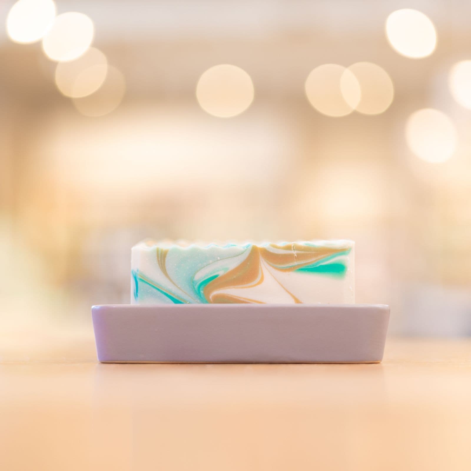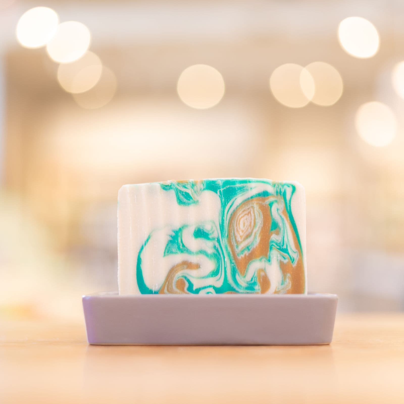 Grey Porcelain and Bamboo Soap Dish
